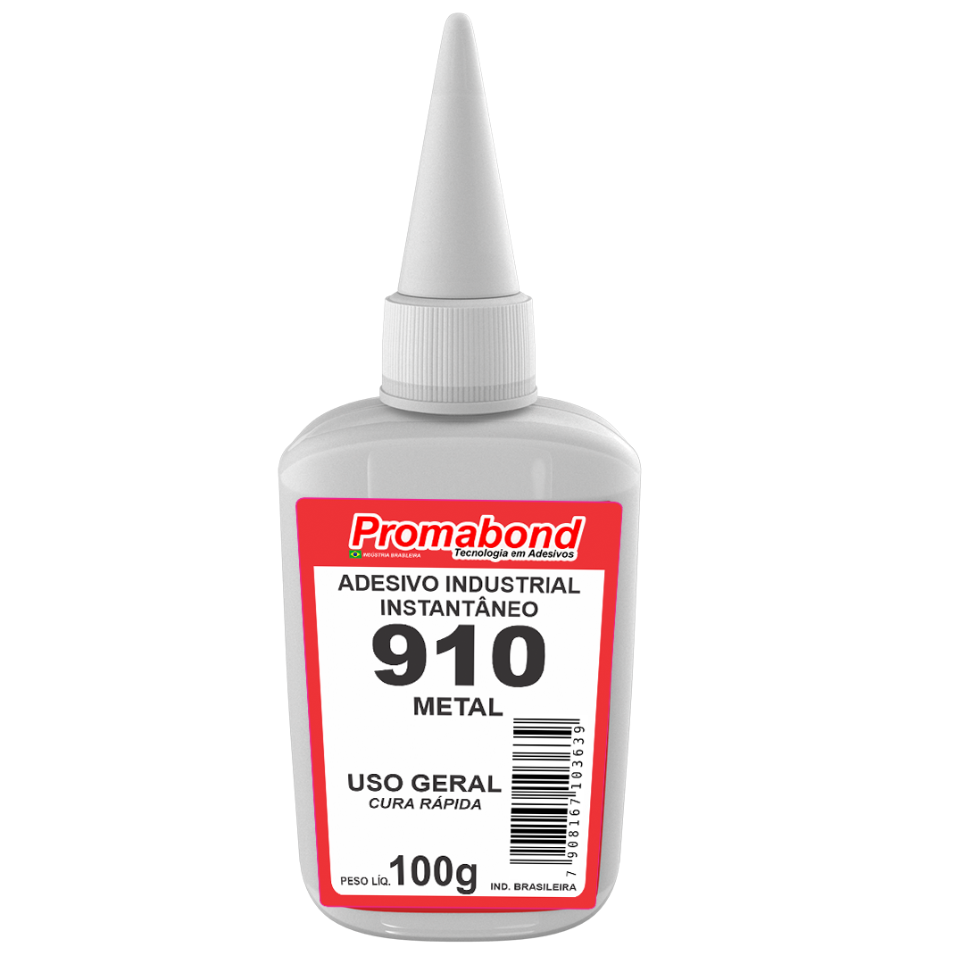 O Adesivo Instantâneo Promabond 910 possui bico antientupimento e aplicação precisa. É ideal para a colagem de borrachas, metais e muito mais. Pode ser usado em diversos tipos de aplicações. Na indústria automobilística, indústria calçadista, fabricação de móveis e indústria madeireira em geral, fabricação, montagem e fechamento de embalagens, indústria eletroeletrônica, fabricação de eletrodomésticos, indústria têxtil, manutenção industrial, artesanato, hobby modelismo, consumo, entre outros. Seu tempo de fixação é de 10 a 30 segundos dependendo do substrato.